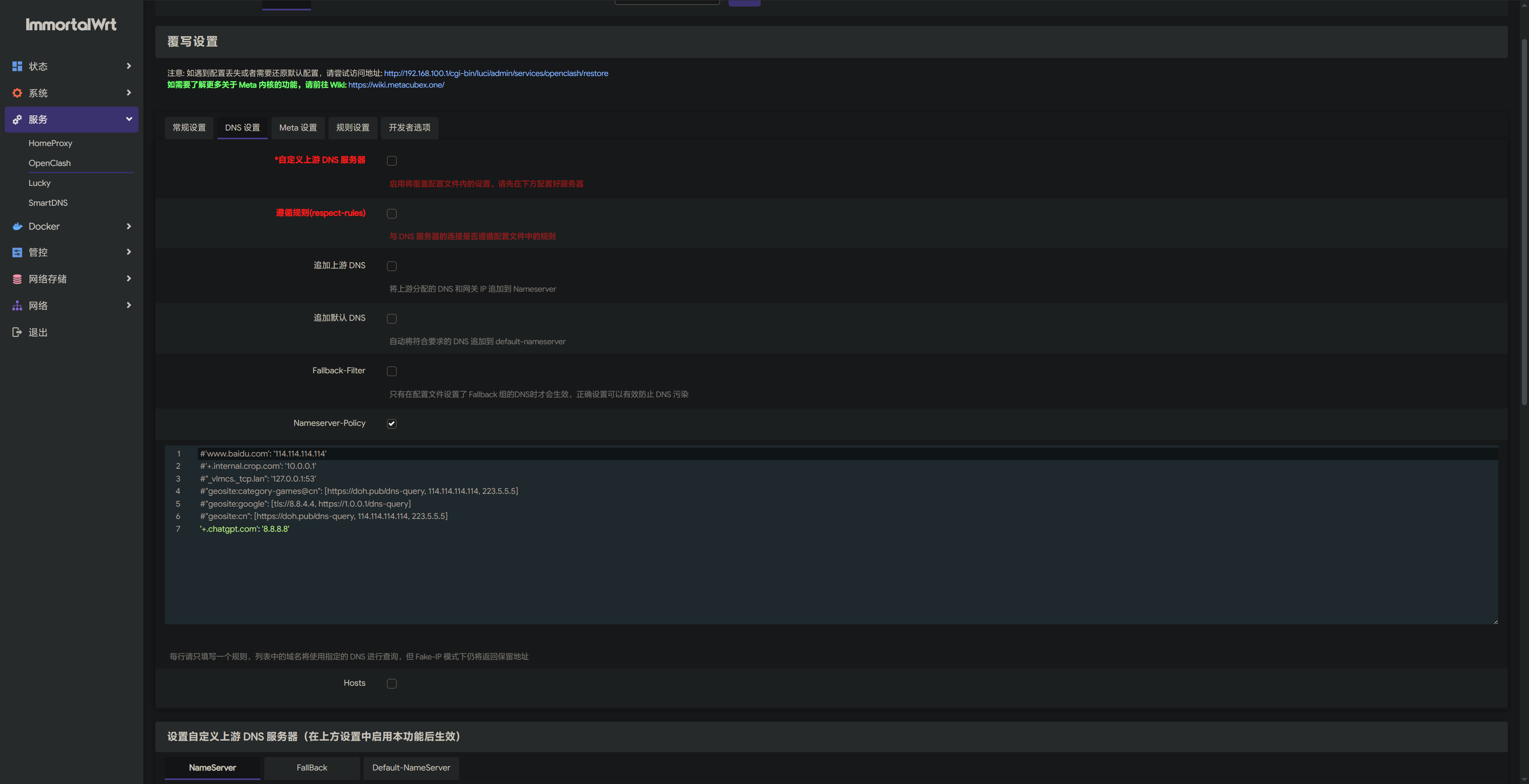 OpenClash添加手动dns分流